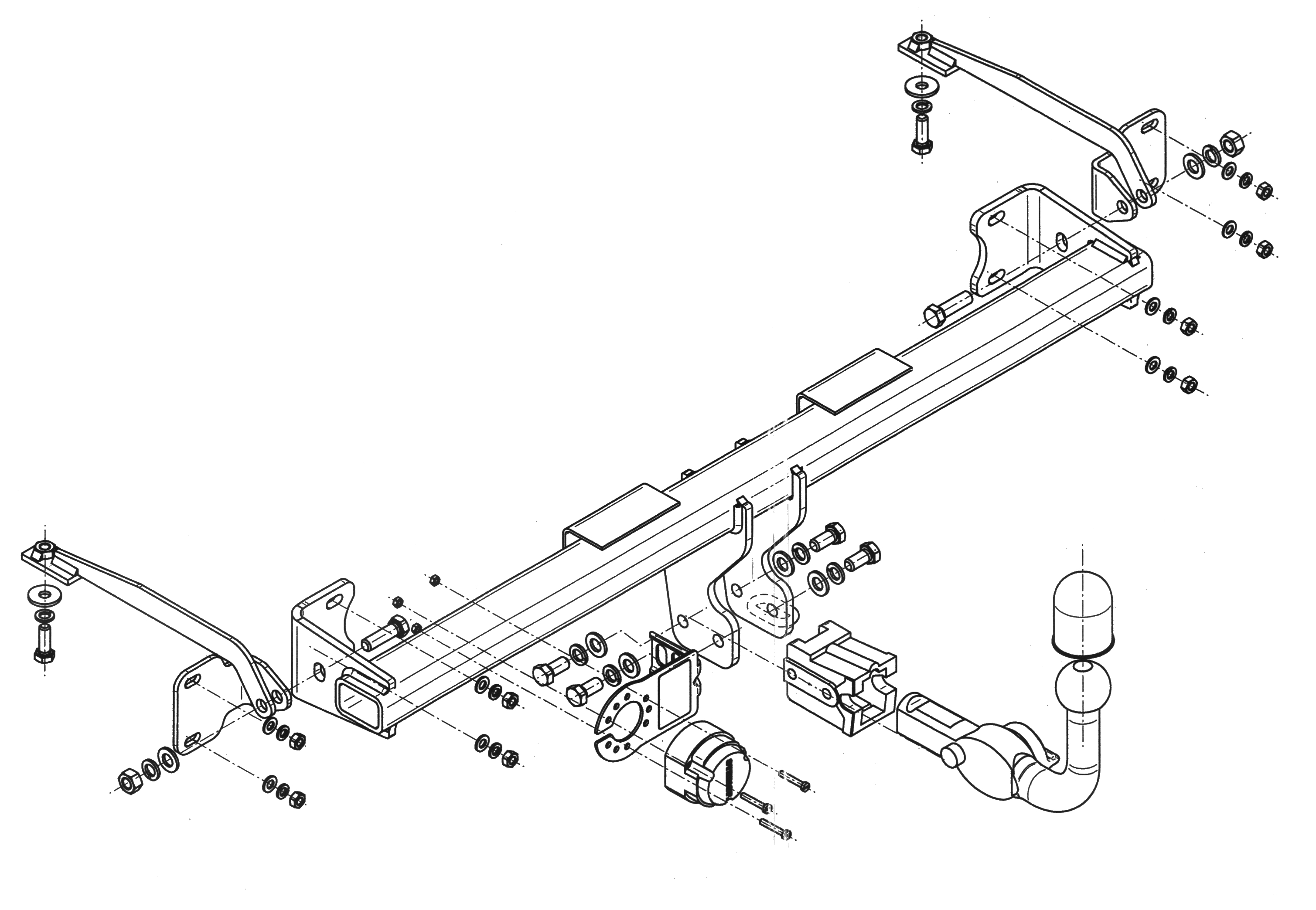 Feste Anhängerkupplung inklusive Montageanleitung.
