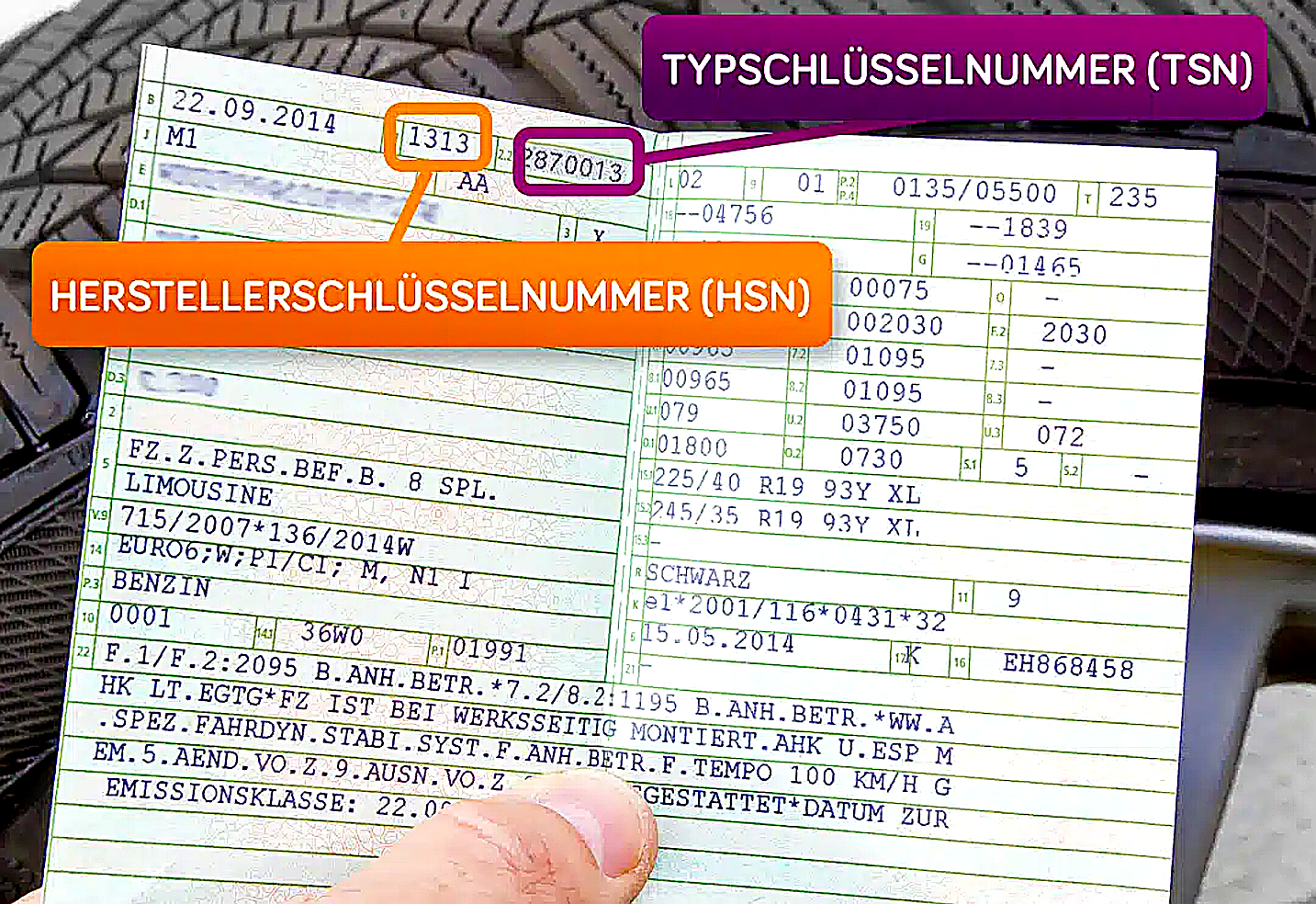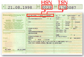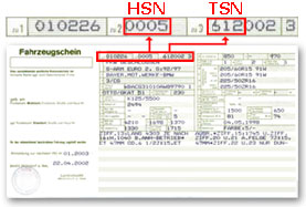 Die HSN- und TSN-Nummern geben den genauen Fahrzeugtyp an und sind entscheidend für die korrekte Zuordnung der passenden Teile.