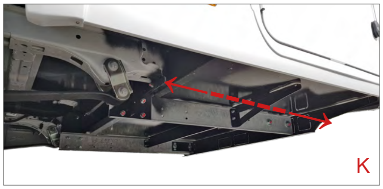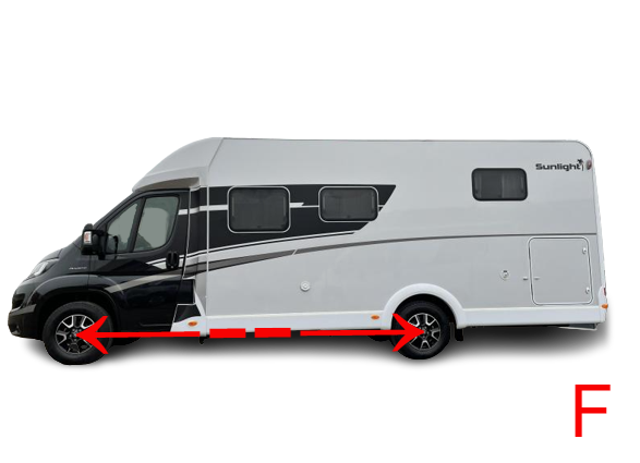 6. Überhang: (Anzahl der cm vom Grundrahmen bis zur hinteren Stoßstange, siehe Beispielfoto K)