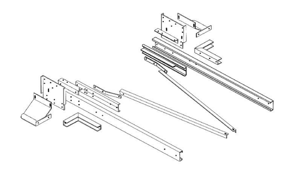 Lieferumfang: Fahrzeugadapter rechts und links, 2 Längsträger/Rahmenverlängerung, Befestigungsmaterial und Montageanleitung.