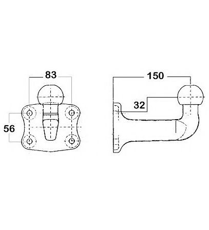 trekbalk voor een trekhaakkoppeling waarin vanaf de fabriek gaten binnen een kader van 56 x 83 zijn aangebracht.