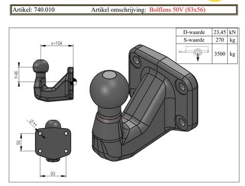 Trekhaak kogel Bolflens flenskogel 50V Artikel 740.010