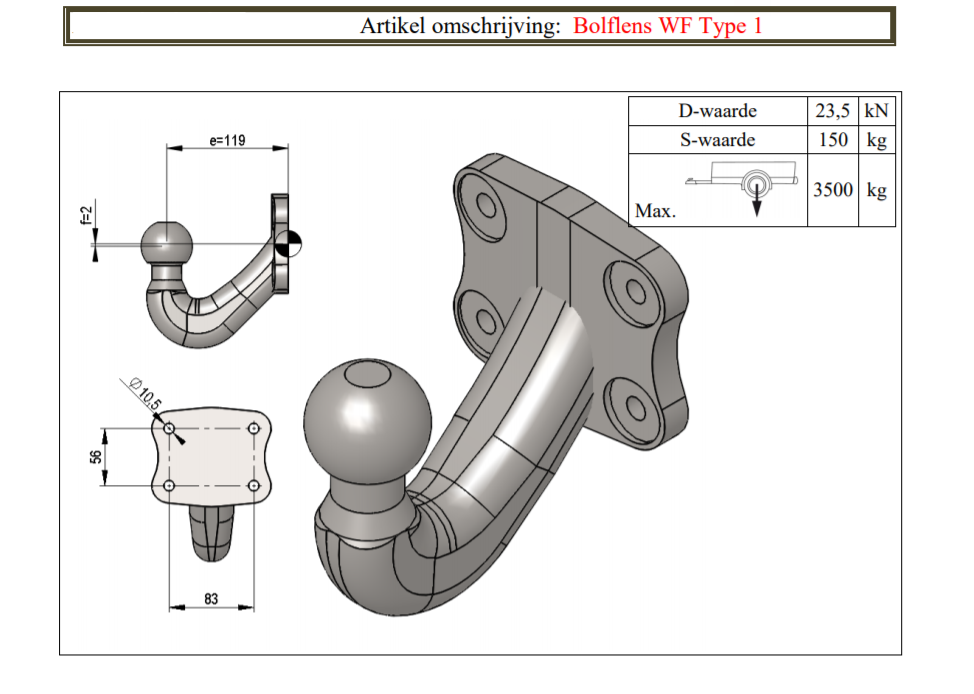 Trekhaak kogel Bolflens 4 gaats verlaagt.