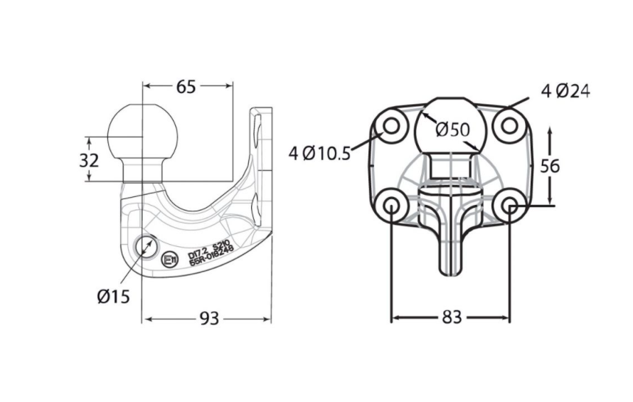 Trekhaak Flenskogel 4 gaats kogeldruk 375 Kilo 3500 trekgewicht met hoge D-waarde 31 KN