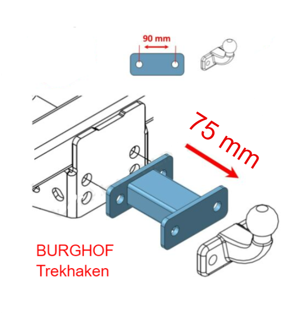 Trekhaak 2 gats verlengstuk universeel 75mm