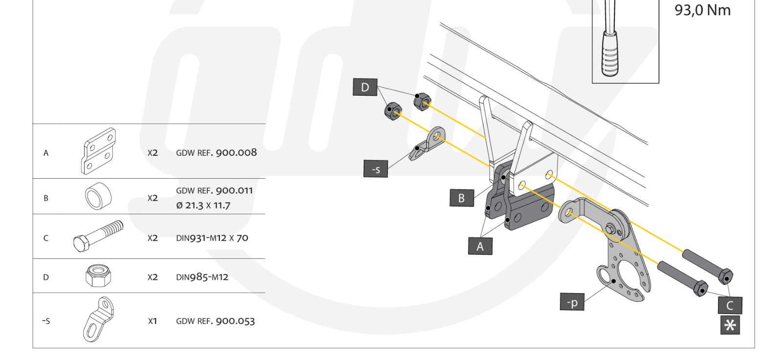 GDW verlaging set alleen voor GDW vaste trekhaak