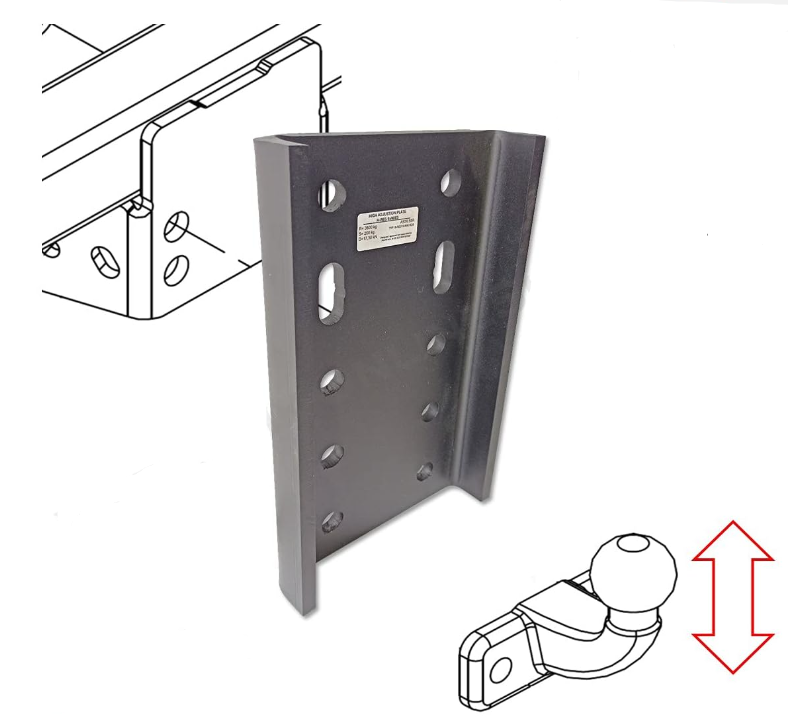 De adapterplaat is zo geconstrueerd dat alle Europese koppelkogels met een flens naar keuze in hoogte verstelbaar zijn.