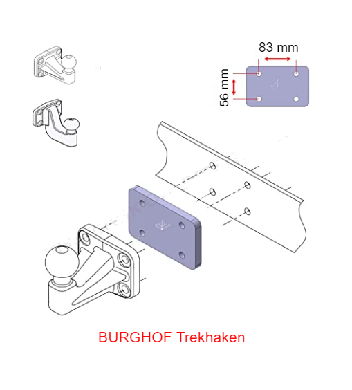 Trekhaak flenskogel achter plaat ook voor AL-KO koppelingen 83 x 56 mm