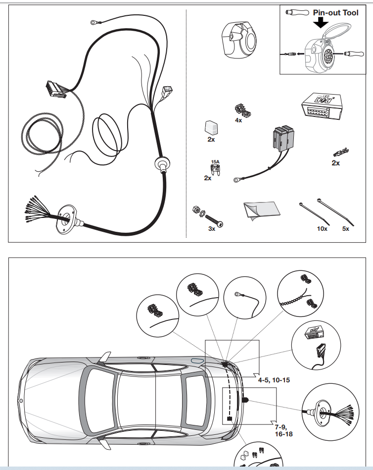 Een kabelset voor voertuigen die voorzien zijn van parkeersensoren en/of CAN-Bus systeem (een computernetwerk ten behoeve van de verlichting). Deze kabelsets zijn voorzien van een stekkerdoos, module, bekabeling en duidelijke handleiding. Kortom een eenvoudige montage!